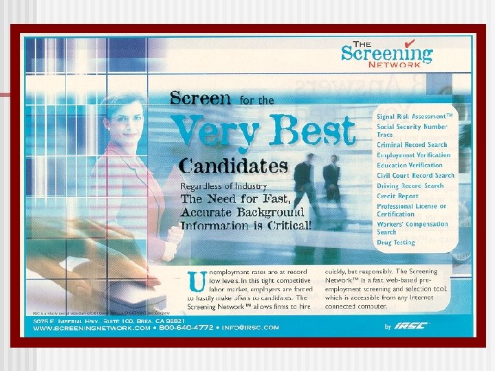 Employment Tests n n Objective Norm Group Comparison Job Related Designed to Evaluate Applicant’s: n n Values Interests Personal Characteristics (Personality/Attitudes) Skills (KSAs)