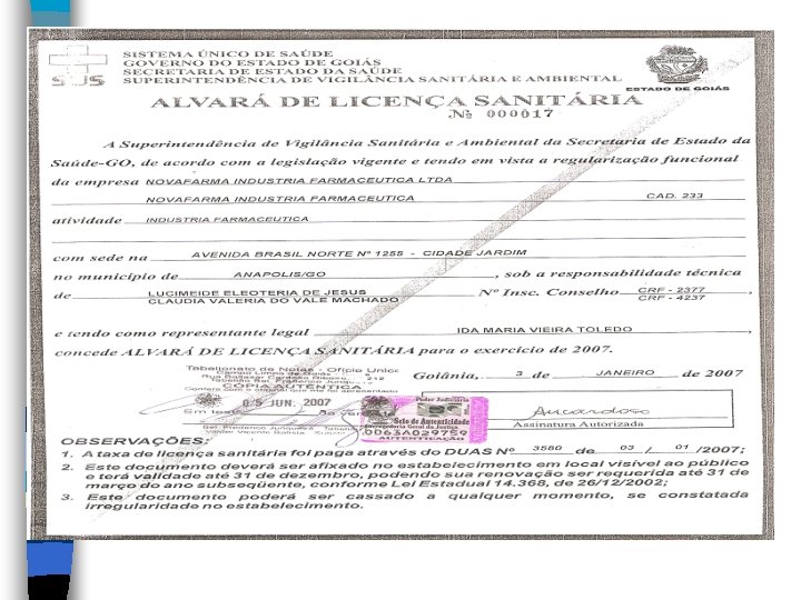 CADASTRO DE FORNECEDORES # Nome jurídico e fantasia do fornecedor # Endereço completo; CNPJ; nacionalidade # Licença Sanitária e Alvará de Funcionamento # Registro Empresa e Produto no MS # Certificado Regularidade – resp. técnica # Autorização especial – Portaria 344 # Credenciamento para comercialização (Distribuidora) # Certificado Boas Práticas de Fabricação na linha de produção # Laudo analítico de Controle de Qualidade # Visita Técnica