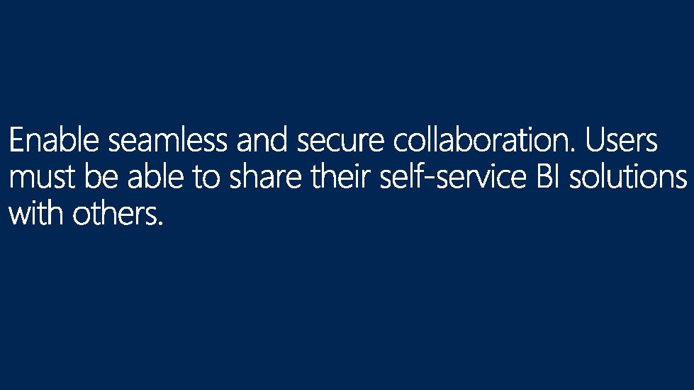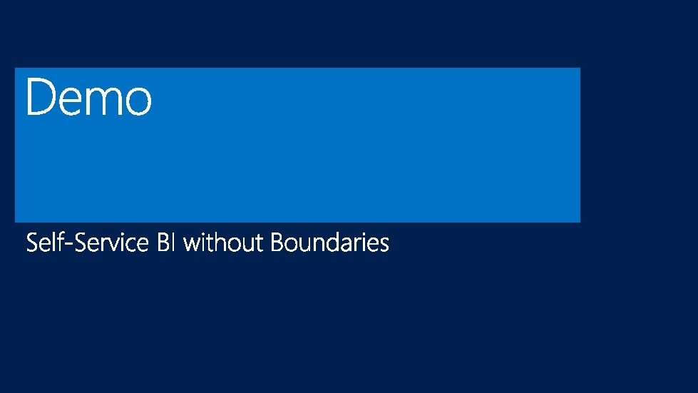 Tighter Control Enterprise Data Warehouse Controlled • Tightly governed • Push Content • Performance. Point • Reporting Services Short Lived • Collaboration • Report Builder Ad Hoc • Loosely governed • Push/Pull content • Power. Pivot • Power View EDW Business Unit Dashboards and balanced Scorecards Team BI and Collaboration Sites Project Sites File Shares My Sites - Personal BI Desktop and Mobile Devices Permanent • Dashboards • Business Intelligence • Business Process Management • Operational Reports Permanent • Knowledge Management • Information Sharing Permanent • Personal Information • Public/Private Views