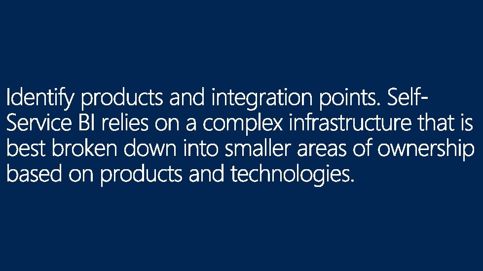 e ige nc ell int BI Pros of du cer s pro Servers • Analysis Services • Reporting Services • Share. Point Server • Third-party systems Power Users lig e tel of in ers Business Analysts co nsu m Clients • Excel and Add-ins • Internet Explorer • Custom Apps nc e Decision Makers Information Workers Permanent • BISM • SQL Server Data Tools • Report Builder • Dashboard Designer More Specialized Ad Hoc • Power. Pivot • Power View • Data Mining Add-Ins Permanent • Operational Reports • Dashboards • Key Performance Indicators Ad Hoc • Power. Pivot • Power View