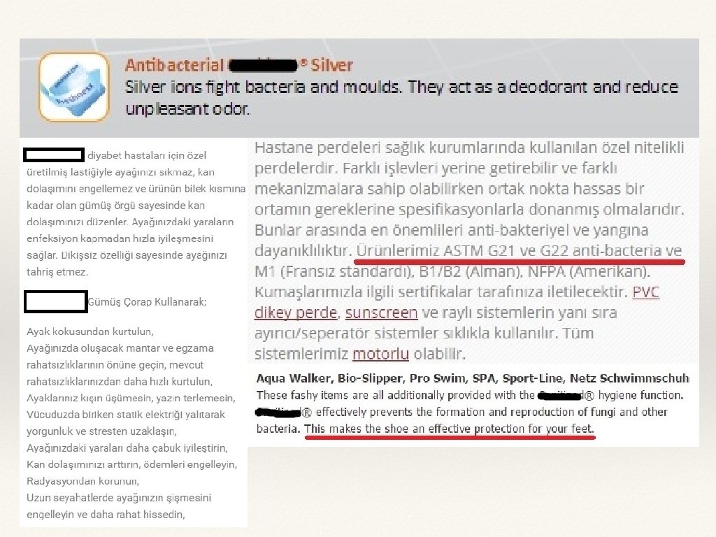 İddianın Önemi ❖ Halk sağlığı ile ilgili iddialar işlenmiş eşyanın kullanıcıları ve kişileri belirli hastalık yapıcı bakteriler, virüsler, mantarlar veya E. coli, Samonella sp. , Streptococcus sp. , influenza H 1 N 1 gibi diğer mikroorganizmalar ve keneler ve sivrisinekler gibi hastalık yapıcı vektörlere karşı koruyacağını da içerir.