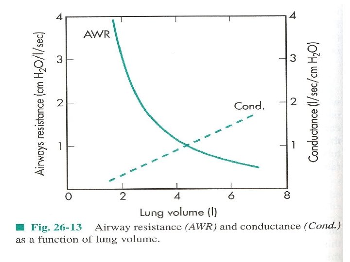 - Factors that contribute to resistance – lung volume, R reduces with increasing LV. If conductance (reciprocal of resitance) is plotted against lung volume the relationship is linear. <othet factors are airway mucus, edema, contraction of bronchial smooth muscle, all decrease the caliber of airways. - Less dense O 2 -helium gas mixture easier breathed during SCUBA or status asthmaticus. - Measured with body box or with esophageal balloon. -R=ΔP/V(flow), normal value 1 -3 cm. H 20/L/sec
