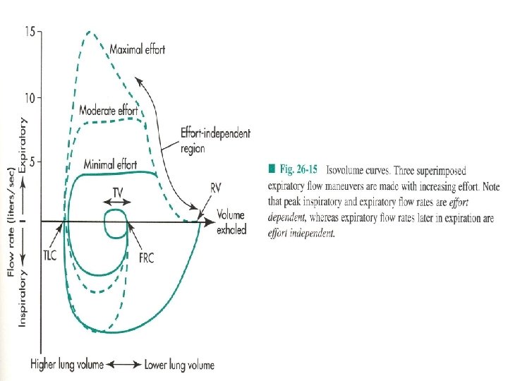 - Three major forces for the maximal inspiratory flow: inspiratory muscles force, static recoil of the lung, reduction of airway resitance with increased LV. Maximal inspiratory flow at the middle between TLC and RV. - Expiratory flow limitation and Equal Pressure Point. This occurs in distensible, collapsable airways, without cartilage. - Two reasons for decreasing transmural pressure during expiration: expiratory airflow resistance and CSA decreases with increasing gas velocity and loss of lateral pressure. - After EPP is achieved no amount of effort will increase the flow further.