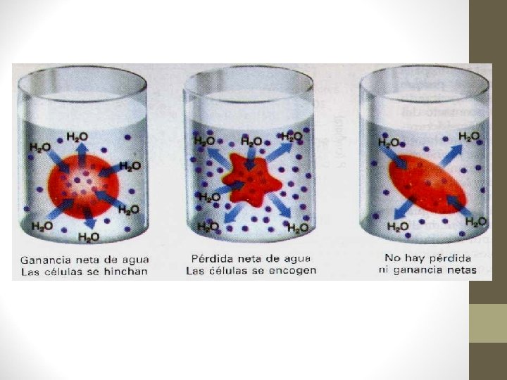 Tonicidad de una solución: Relación entre osmolaridad de una solución y osmolaridad del citoplasma de una célula. Solución Isotónica (normal) [ ] de Solutos = [ ] de Solutos de la Célula Osmolaridad = 0. 28 -0. 32 Solución Hipotónica (Hincha) [ ] de Solutos < [ ] de Solutos de la Célula Osmolaridad<0. 28 Solución Hipertónica (Encoge) [ ] de Solutos > [ ] de Solutos de la Célula Osmolaridad>0. 32