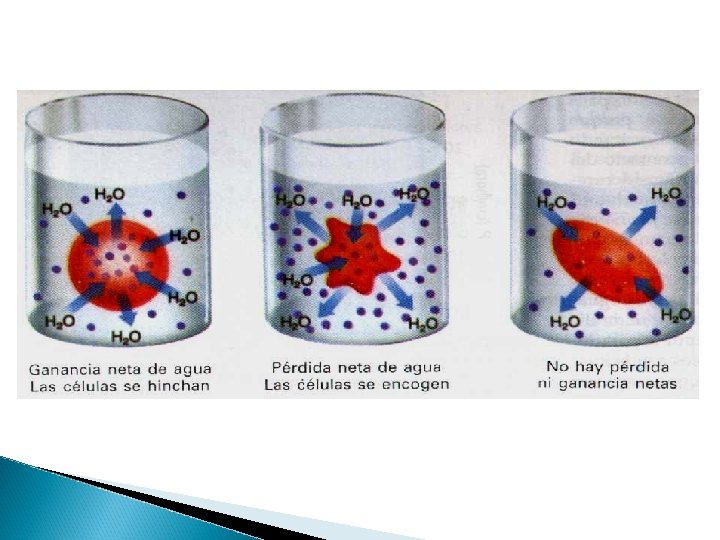Tonicidad de una solución: Relación entre osmolaridad de una solución y osmolaridad del citoplasma de una célula Solución Isotónica (normal) Conc. Solutos=Conc. Solutos de la Célula Osmolaridad = 0. 28 -0. 32 Solución Hipotónica (Hincha) Conc. Solutos <Conc. solutos de la Celula Osmolaridad<0. 28 -0. 32 Solución Hipertónica (Encoge) Conc. Solutos >Conc. solutos de la Celula Osmolaridad>0. 28 -0. 32