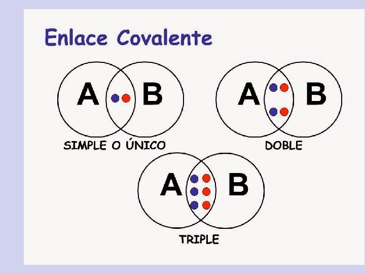 Enlace covalente puede ser: n n Según la diferencia de electronegatividad: Polar (0. 4 a < 1. 8) Apolar (< 0. 4) Según los electrones compartidos (sencillo, doble, triple).
