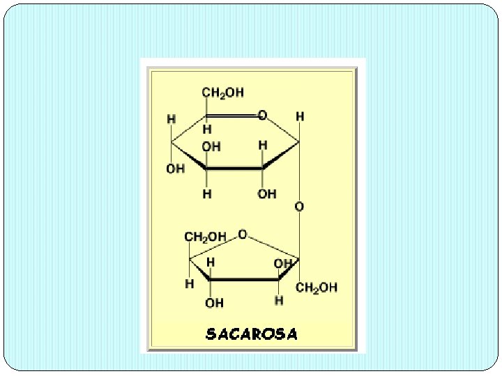 Los disacáridos de importancia biológica son: Lactosa = D-galactosa + D-glucosa β (1 4) Maltosa = D-glucosa + D-glucosa α (1 4) Sacarosa o Sucrosa = D-glucosa + D-fructosa α(1 2)