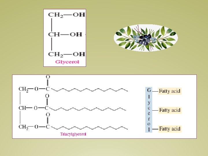 3. Se indica el número de los carbonos del glicerol 1, 2, 3, luego se nombra el ácido graso con el prefijo tri y la terminación ico por oilglicerol. Ej. Tripalmitoleoilglicerol. Trilinolenoilglicerol. Esterearoilglicerol.