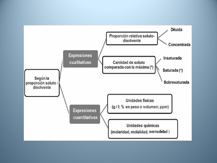 ppm= mg de soluto Kg de solución Las partes por millón (ppm) se usan para solutos que se encuentran en cantidades pequeñísimas: mg de soluto por kilogramo de disolución.