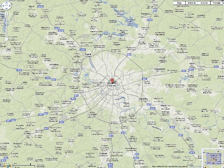 Maps Map properties {{ #display_point: zoom=10 |width=1200 |height=1000 | 55. 7557860, 37. 6176330 | service = google | type = physical | types = terrain, hybrid, earth | controls = large, overview-map, scale, type }}