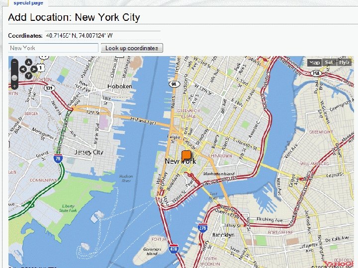 Semantic Maps • Media. Wiki extension • Hooks into – Maps – Semantic Media. Wiki – Semantic Forms • Functionality – Aggregation of coordinates (Result formats) – Insertion of coordinates (Form inputs)