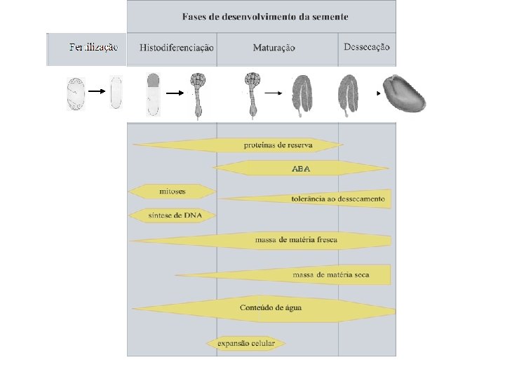 Estruturas típicas de uma semente endosperma cotilédones embrião testa - efetuador de crescimento - fonte de energia potencial - interface embrião (eixo)