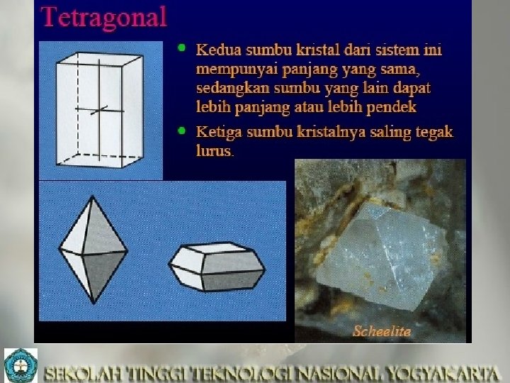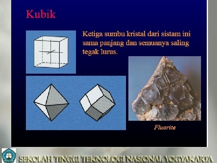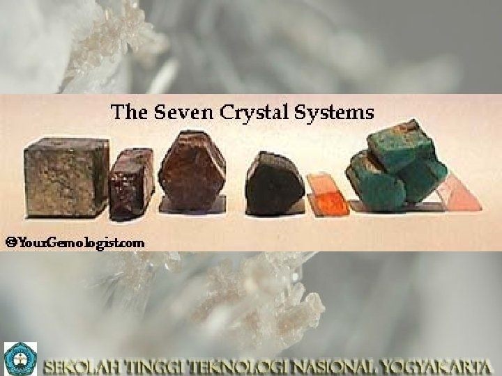 Semester 1, 2018 -2019 Kristal-Mineral GS 1126 - 2 SKS teori by: DR. hill. gendoet hartono Selasa&Jumat-jam 07. 30 – 09. 10 & jam 09. 15 – 10. 55