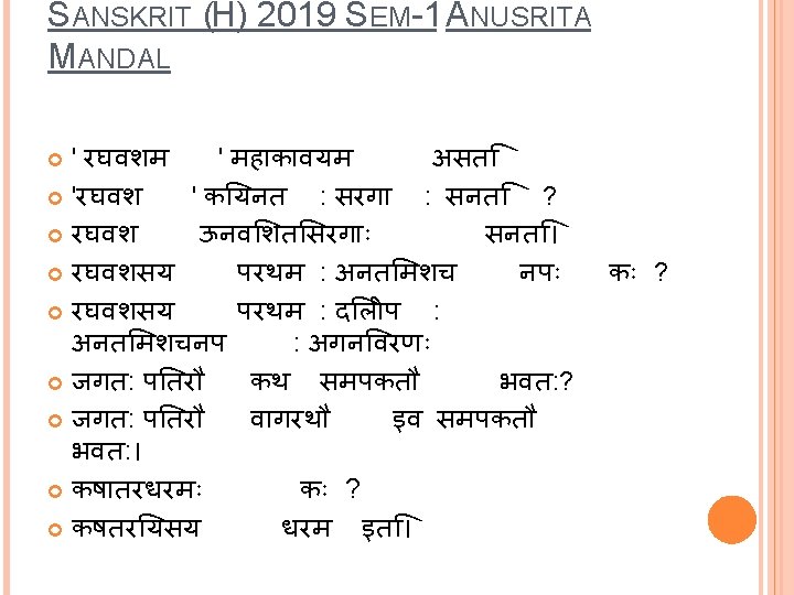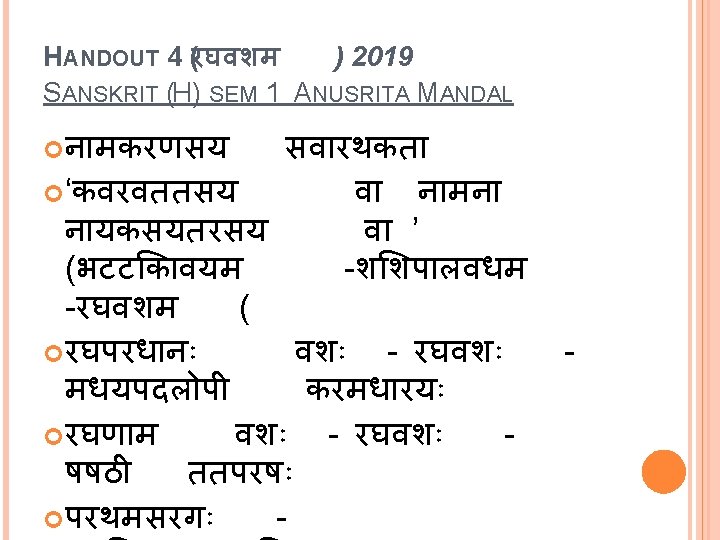 SEMESTER 1 Anusrita Mandal Dept Of Sanskrit HANDOUT