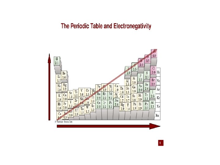 Electronegativity • Ability of an atom to attract electrons in a chemical bond • Difference between electronegativity between atoms • Less than 0. 3 non-polar covalent (less than 5% ionic character) • 0. 4 -1. 7 polar covalent (between 5 -50% ionic character) • 1. 7> ionic (greater than 50% ionic character)