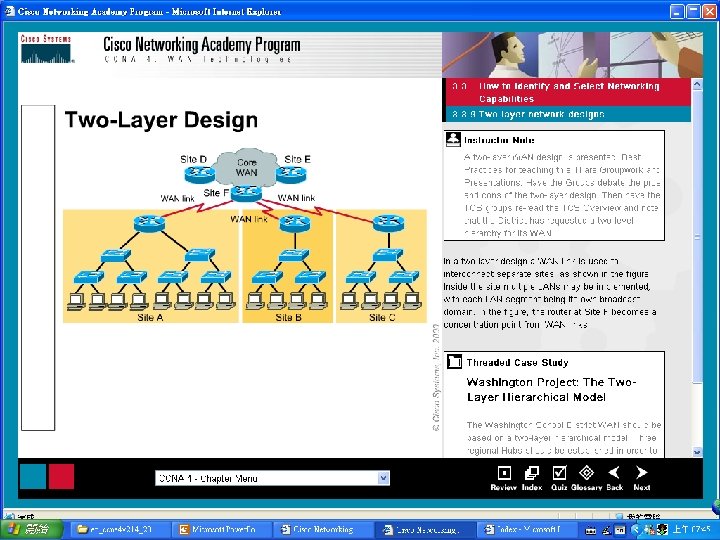 Two-Layer Hierarchical Design In a two-layer design, a WAN link is used to interconnect separate sites. Routers have the ability to determine paths from the source host to destination host based on Layer 3 addressing. Data traffic flows up the hierarchy only as far as it needs to find the destination host. This conserves bandwidth on other WAN links. A workgroup server is placed at the access layer of the site where the largest concentration of users is located, and traffic crossing the WAN link to access this server is limited.