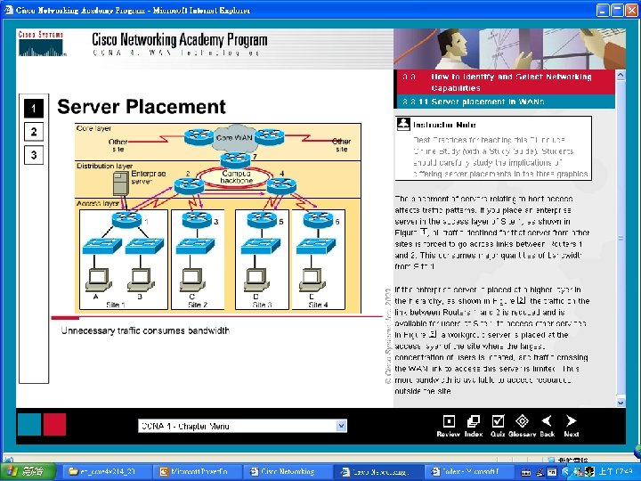 Semester 4 - Chapter 3 – WAN Design Routers within WANs are connection points of a network. Routers determine the most appropriate route or path through the network for the required data streams. Two primary goals drive WAN design and implementation: • Application availability – – Networks carry application information between computers. – If the applications are not available to network users, then ………. . • Total cost of ownership – – Information Systems (IS) department budgets often run in the millions of dollars. – As large businesses increasingly rely on electronic data for managing business activities, the associated costs of computing resources will continue to rise. – A well-designed WAN can help to balance these objectives. – When properly implemented, the WAN infrastructure can optimize application availability and allow the cost-effective use of existing network resources.