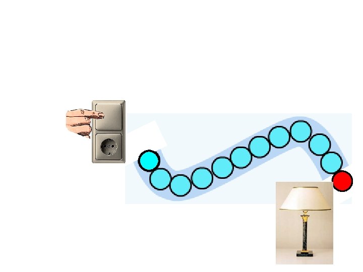 Tok v vodniku • V izoliranem prevodniku se elektroni gibljejo v naključnih smereh. • Pritisnjena napetost na vodnik ustvari električno polje, ki povzroča silo na elektrone. • Elektroni se vseeno gibljejo precej naključno. • Na svoji poti skozi snov doživljajo trke z drugimi elektroni, jedri, ioni in izgubljajo ali pridobivajo energijo. • Delo električnega polja nadomesti energijske izgube zaradi trkov. • Elektroni se zato v polju v povprečju gibljejo v isto smer.