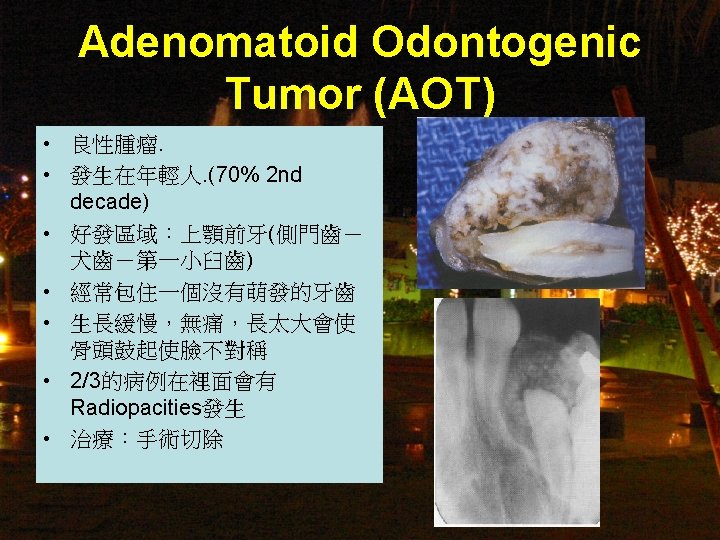 牙放seminar第一組 2. 1. 1 -1 Periapical granuloma 2. 1. 2 -4 Nasopalatine duct cyst 2. 1. 1 -2 Radicular cyst 2. 1. 2 -5 Eosinophilic granuloma 2. 1. 1 -3 Surgical defect 2. 2 -1 Dental follicle 2. 1. 1 -4 Periapical abscess 2. 2 -2 Pericoronitis 2. 1. 1 -5 Osteomyelitis 2. 2 -3 Paradental cyst 2. 1. 2 -1 Cementoma 2. 2 -4 Dentigerous cyst 2. 1. 2 -2 Periodontitis 2. 2 -5 Muralameloblastoma 2. 1. 2 -3 Trauma bone cyst 2. 2 -6 Adenomatoid Odontogenic Tumor