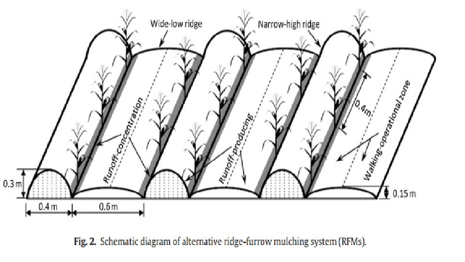 EXPERIMENT • DESIGN-RCBD • TREATMENTS • A) RIDGE AND FURROW BLACK PLASTIC MULCH (RFB) • B) RIDGE AND FURROW TRANSPARENT PLASTIC MULCH (RFT) • C)RIDGE AND FURROW GRASS STRAW (RFS) • D) RIDGE AND FURROW CONVENTIONAL TILLAGE (NO- MULCH) (RF/CK) NB: RIDGE AND FURROW-THE RIDGE HARVEST FALLING RAIN AND CONCENTRATE IT IN THE FURROW
