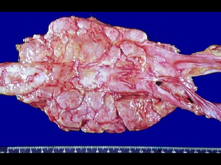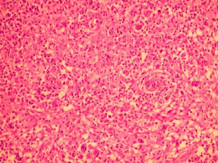 CASO 3 • Paciente masculino de 62 años, con cuadro de tos persistente y compromiso de estado general. No responde a antibiótico, radiografía sospechosa de TBC. Baciloscopías negativas. • Aparece aumento de volumen de ganglios cervicales y supraclaviculares, baja de peso y sudoración. • Es hospitalizado, con derrame pleural y trombosis venosa. • Se programa biopsia de ganglio, aparecen lesiones nodulares y papulares de piel. • Fallece en insuficiencia respiratoria. Se halla aumento de tamaño generalizado de ganglios , nódulos de pulmón e hígado de hasta 1 cm. • Se presenta lesiones e histología de ganglios y piel.
