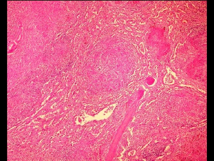 CASO 4 • Hombre de 61 años, con antecedente de irradiación de zona inguinal por tumor que no sabe precisar unos 5 años atrás. • Presenta recaída de adenopatía, realizándose estudio con ecografía abdominal. • Se comprueba esplenomegalia heterogérnea , adenopatías extensas y hepatomegalia. • Se reseca bazo , cuña hepática y ganglios, realizándose estudio histopatológico y con inmunohistoquímica. • Se muestra hallazgos en bazo.