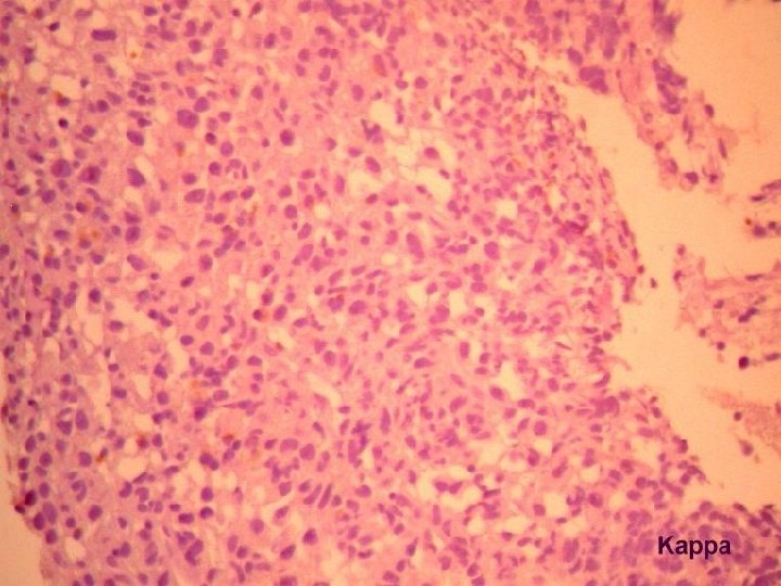 Caso 1 • Paciente masculino de 70 años, historia de dorsalgia que no responde a analgésicos, se agrega insuficiencia cardiaca. • Radiología de columna demuestra focos de destrucción ósea múltiples en cuerpos vertebrales. • Fallece por cuadro de descompensación cardiaca, en autopsia se confirma lesiones líticas de columna. • Se presenta histología y pesquisa de cadenas de inmunoglobulinas en foco lítico.