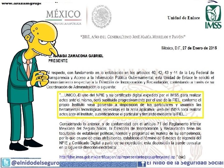 GRACIAS POR SU ASISTENCIA Su Servidor y Amigo Gabriel Aranda Zamacona A sus ordenes en: www. arazamgrupoconsultor. com gabriel@arazamgrupoconsultor. com Oficina Nacional 01800 8366022 Oficina Veracruz (01 -272) 1660097 Nextel I. D. 32*776206*1 www. twitter. com/elnidodelseguro Facebook: El Nido de la Seguridad Social