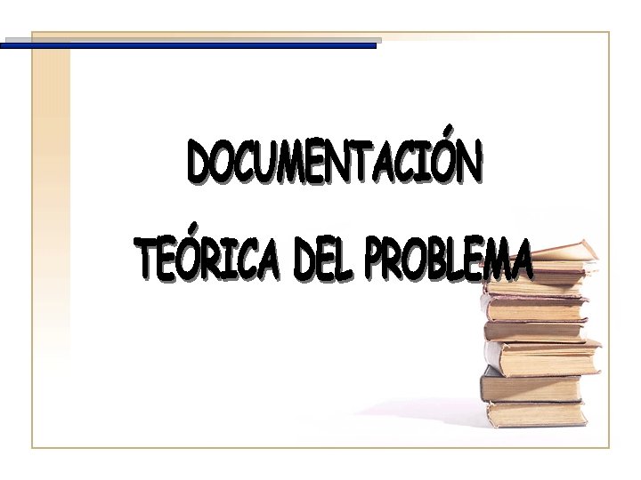 Documentación del Problema Consiste en la revisión de literatura, trabajos de investigación, fuentes electrónicas, base de datos especializadas y otras fuentes que le permitan al investigador sustentar el deber ser del problema. Recopilación Ideas Posturas Enfoques Conceptos Definiciones