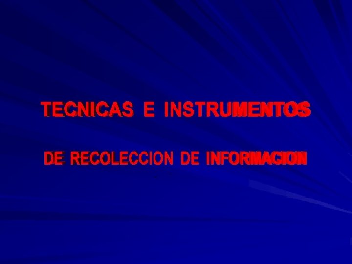 INSTRUMENTOS DE RECOLECCIÓN DE INFORMACIÓN Cuestionario: preguntas abiertas, cerradas (dicotómicas) o mixtas Guión de entrevista Escalas de estimación Cuestionario de opinión (Escala tipo Likert) Escalas de actitudes Registros Anecdóticos Hojas de observación