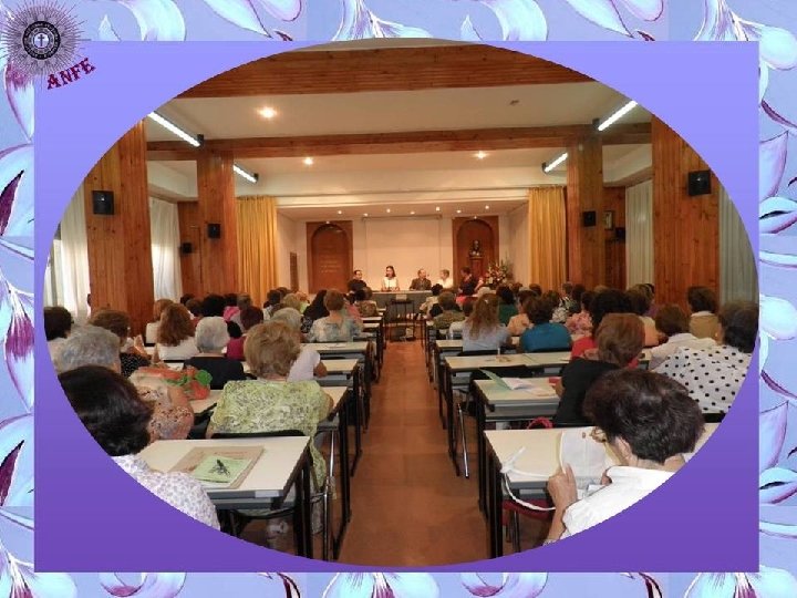Presentación de las Jornadas De izquierda a derecha: Don Alfonso López (Consiliario Nacional de Anfe); Susana Fernández (Presidenta Nacional); Don Florentino Gutiérrez (Vicario General de la Diócesis de Salamanca representando al Sr. Obispo que se encontraba ese día de retiro); Pepita Albarrán (Presidenta de Anfe de Salamanca) y Maria Asun de la Rasilla (Vocal de Jornadas)