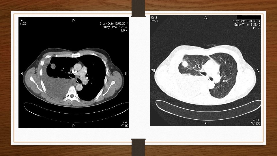 LIQUIDO PLEURAL ANALITICA DE SUERO Proteínas totales: 4. 9 g/dl Proteínas totales 6. 2 g/dl LDH 1107 LDH 474 Entonces… q 4. 9/6. 2= 0. 7 q 1107/474= 2. 33 q 2/3 (1107) = 738