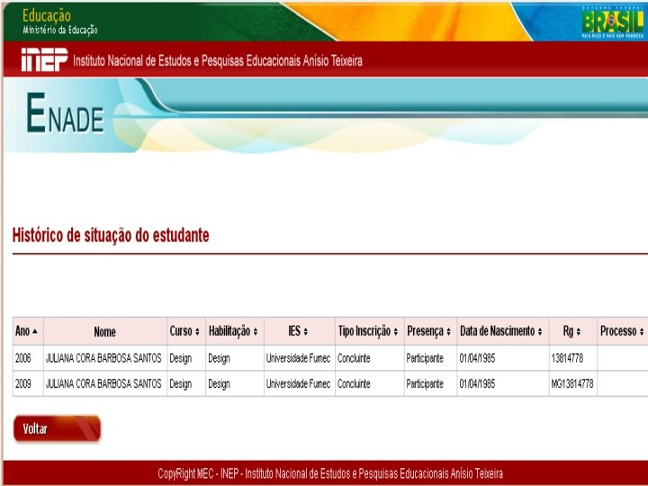 MEC – INEP – DAES – CGENADE – Enade 2012 – Questões Operacionais 46 Inscrição