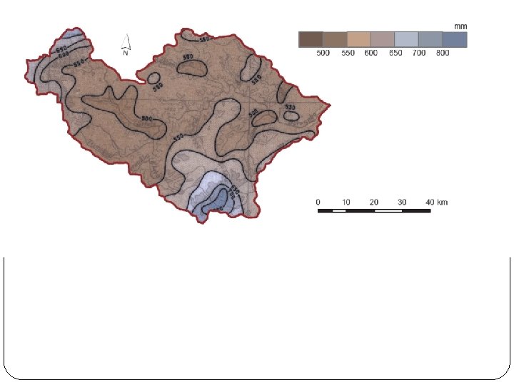 Metoda izohyet /možnost výpočtu v Arc. GISu – popsat postup do textu! - při výpočtu se vychází z mapy izohyet (mapa geografického rozložení průměrného ročního úhrnu srážek), Atlas podnebí ČSSR - změřit plochu mezi izohyetami (planimetrováním, čtver. metodou nebo Arc. GIS) - výpočet váženým průměrem (váha - plochy mezi izohyetami), 1 tabulka Tab. 5 Údaje pro výpočet průměrného ročního úhrnu srážek metodou izohyet xi [mm] pi xi. pi střed intervalů izohyet plocha mezi izohyetami součin xi a pi x … průměrný roční úhrn srážek v povodí [mm] xi … střed intervalu izohyet [mm] pi … plocha mezi izohyetami [km 2]