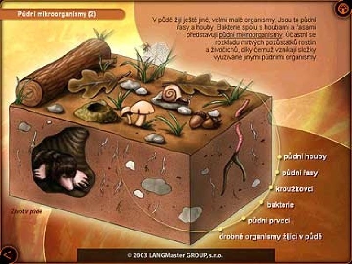 Podmínky půdotvorného procesu l l Reliéf l největší význam má: l výšková poloha l svažitost l expozice - vystavení vlivu povětrnostních jevů, apod. l terénní deprese l ovlivňuje provlhčení půdy a její teplotu Čas l čas nutný k průběhu dějů http: //images. google. cz/images? hl=cs&q=krtek&btn. G=Hledat+obr%C 3%A 1 zky &gbv=2