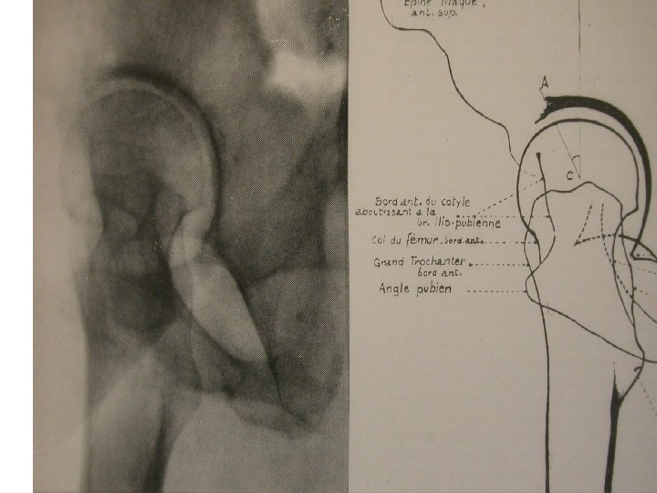 SEMIOLOGIE DE LA HANCHE • 1° Interrogatoire: Signes fonctionnels La douleur: topographie: pli inguinal fesse irradiations: face ant de cuisse genou circonstances de survenue: brutalement progressivement horaire: à la marche ou à l’effort (périmètre de marche à chiffrer) la nuit (dérouillage matinal à chiffrer) évolution: lente ou rapide