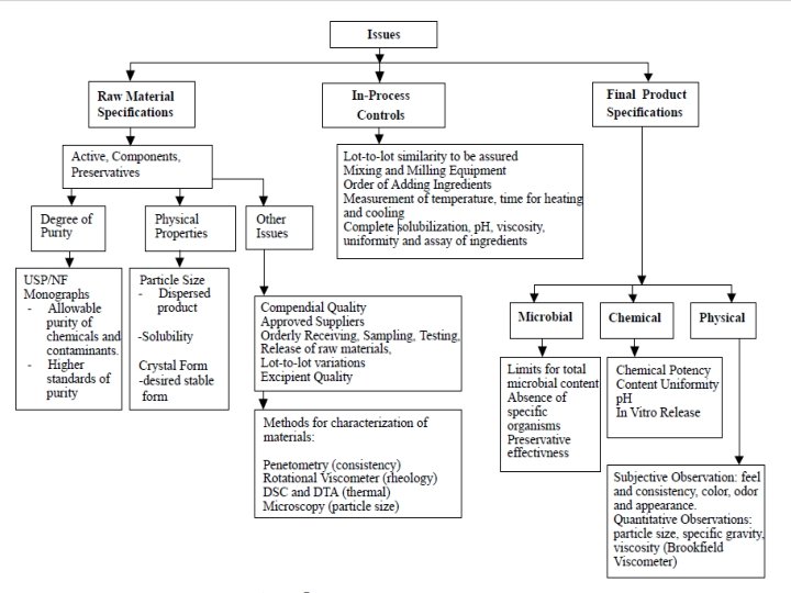 • According to the FDA draft guidelines to the industry , semisolid preparations should be evaluated for appearance, clarity, color, homogeneity, odor, p. H, consistency, viscosity, particle size distribution (when feasible), assay, degradation products, preservative and antioxidant content (if present), microbial limits/sterility, and weight loss (when appropriate). • Additionally, samples from production lots of approved products are retained for stability testing in case of product failure in the field. • Ointments, pastes, gels, and creams in large containers including tubes should be assayed by sampling at the surface, top, middle, and bottom of the container. In addition, tubes should be sampled near the crimp.