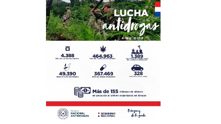Total de lucro cesante daño ocasionado al crimen organizado durante 2019 es de aproximadamente: U$S. 155. 000 US$ 17 veces mas que Presupuesto de SENAD