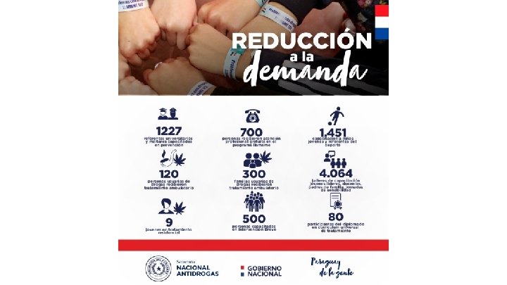 • SENAD también tiene otro brazo que es la lucha contra las adicciones por medio de la Dirección General de Reducción de la Demanda, que trabaja denodadamente en Prevención y Tratamiento y Rehabilitación, a puro pulmón. • En este lapso logramos: