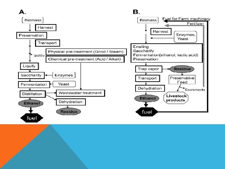 v Carbohydrates are fond locked in wastes. The complex polysaccharides are converted into simple sugars. v It is carried out by Closteridium thermocellum, C. thermohydosulphuricum and C. thermosaccharolyticum. v The simple sugars are converted to ethanol by Zymomonas mobilis, Thermoanerobacter ethanolicus, etc. , v Some microbes are produce ethanol directly from carbohydrate wastes. Eg, Monilia, fusarium.