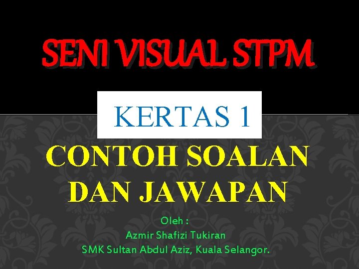 SENI VISUAL STPM KERTAS 1 CONTOH SOALAN DAN JAWAPAN Oleh : Azmir Shafizi Tukiran SMK Sultan Abdul Aziz, Kuala Selangor.