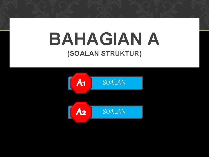 BAHAGIAN A (SOALAN STRUKTUR) A 1 SOALAN A 2 SOALAN