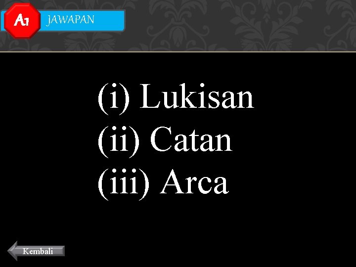 A 1 JAWAPAN (i) Lukisan (ii) Catan (iii) Arca Kembali