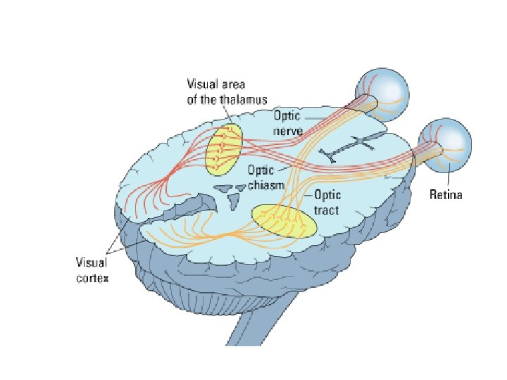 Color Vision • Trichromatic theory - theory of color vision that proposes three types of cones: red, blue, and green. • Afterimages - images that occur when a visual sensation persists for a brief time even after the original stimulus is removed. • Opponent-process theory - theory of color vision that proposes four primary colors with cones arranged in pairs: red and green, blue and yellow. • Lateral geniculate nucleus (LGN) of thalamus