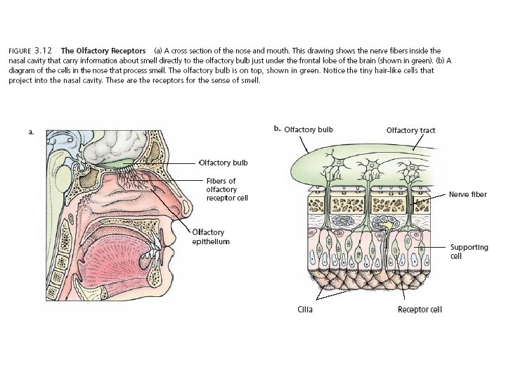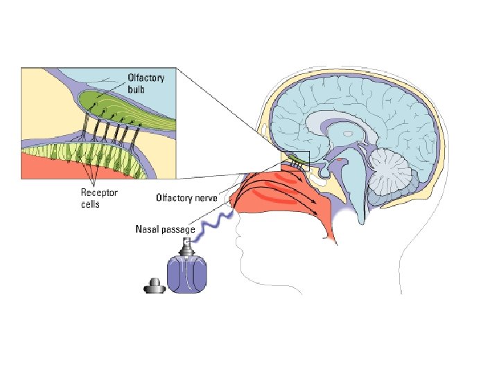 Smell • Olfaction (olfactory sense) – sense of smell. • Olfactory bulbs - areas of the brain located just above the sinus cavity and just below the frontal lobes that receive information from the olfactory receptor cells. • At least 1, 000 olfactory receptors.
