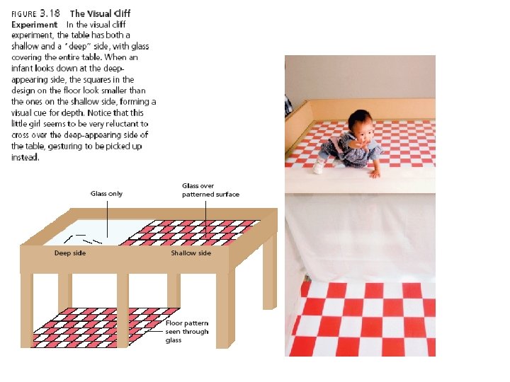 Depth Perception • Depth perception - the ability to perceive the world in three dimensions. • Studies of depth perception • Visual cliff experiment
