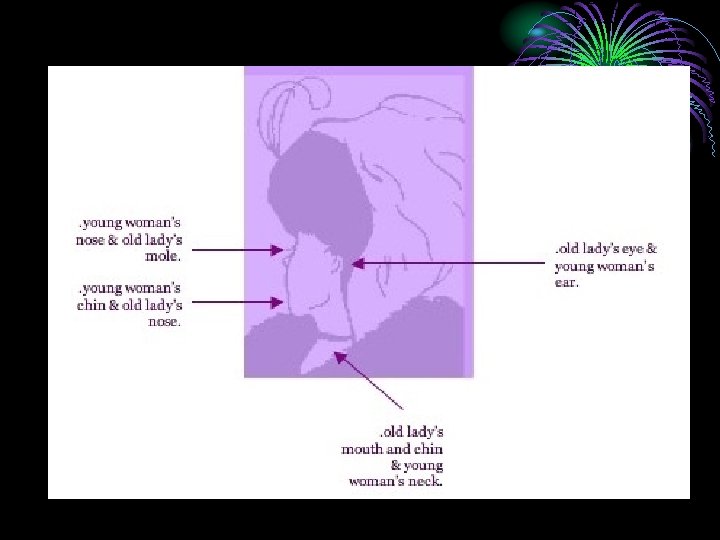 • 3. Figure-Ground Perception • Organization of the visual field into objects (figures) that stand out from their surroundings (ground) • Perception of figures against a background.