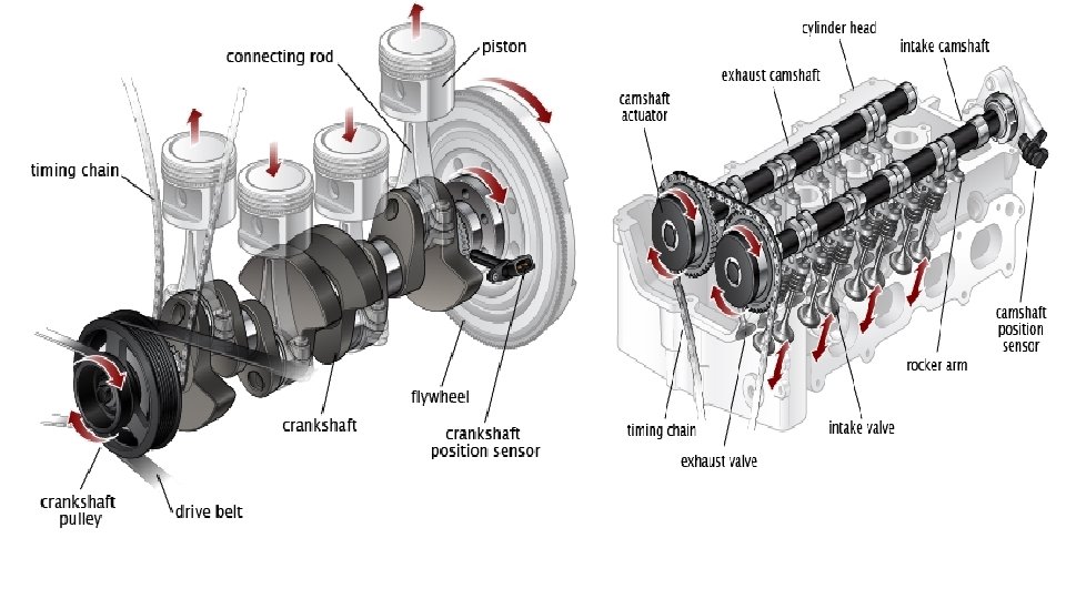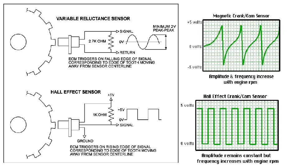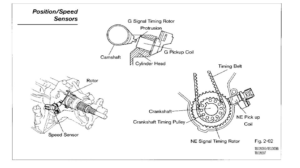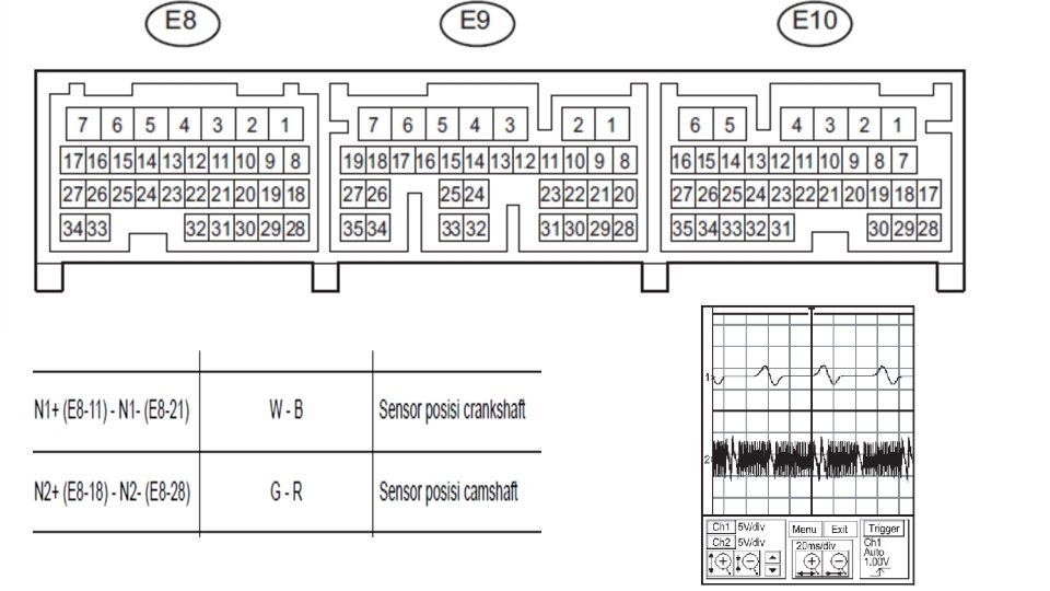 Sensor posisi crankshaft (sinyal N 1) terdiri dari magnet, inti besi dan pickup coil. Plat sinyal posisi crankshaft memiliki 30 gigi (36 dikurangi 6 gigi) dan dipasangkan pada puli timing crankshaft. Sensor ini membangkitkan 30 sinyal setiap kali mesin berputar. ECM mendeteksi sudut crankshaft dan putaran mesin berdasarkan pada sinyal N, maupun berdasarkan silinder pada kombinasi sinyal N 1 dan sinyal N 2*. Sensor posisi camshaft (sinyal N 2) terdiri dari sebuah magnet, inti besi dan pickup coil, dan dipasangkan pada cylinder head. Timing rotor memiliki 3 gigi dan terintegrasi dengan intake camshaft. Sewaktu camshaft berputar, gigi pada timing rotor dan celah udara pada pickup berubah, menyebabkan fluktuasi dalam medan magnet dan membangkitkan gaya elektromotif dalam pickup coil. Karena gigi berdekatan dengan timing rotor dan bergerak melewati pickup coil, maka dibangkitkan voltase dan arus listrik bolak-balik (alternating current).