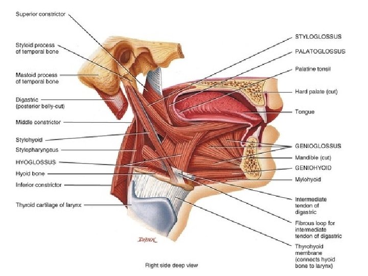 KIELI (1) Vapina Faskikulaatio HUOMIOITAVAA AIVOHERMO YMN vaurio→ kielen atrofia, spastisuus AMN vaurio→ velttohalvaus (kieli kääntyy vauriopuolelle) XII (n. hypoglossus/ kielihermo) Kielen työntäminen ulospäin Genioglossus- ja Verticalis-lihas XII Kielen vetäminen sisäänpäin Styloglossus-lihas Kielen kärjen nosto Superiorior Longitudinal-lihas Kielen kannan nosto Styloglossus- ja Glossopalatinus-lihas (X, n. vagus/kiertäjähermo) Lateraalisesti oikealle Lateraalisesti vasemmalle Inferior ja Superior Longitudinal-lihas XII