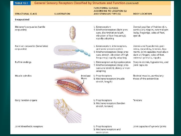 Sensory Receptors Classified based on stimulus type location